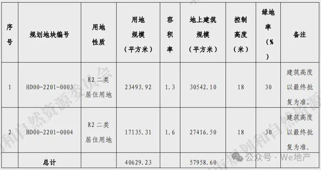 这两幅地的用地性质、用地规模、容积率、地上建筑规模、控制高度、绿地率等见下表: