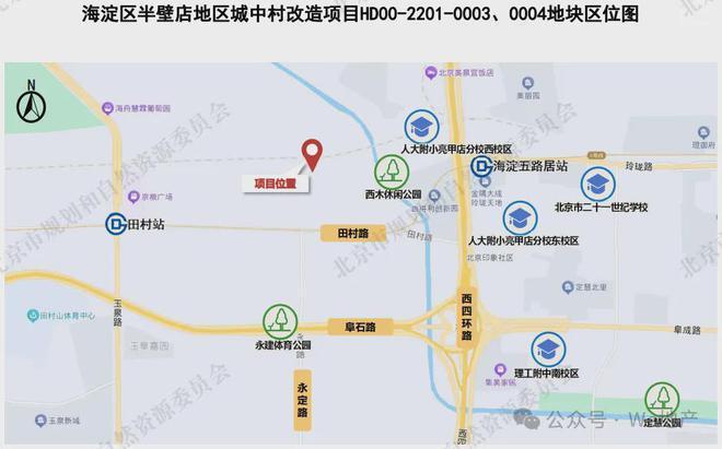半壁店0003、0004地块位于田村路街道,地处北四环与五环之间,东侧临近西四环城市快速路与轨道交通站点地铁6号线五路居站及田村站;南侧临近永建体育公园。